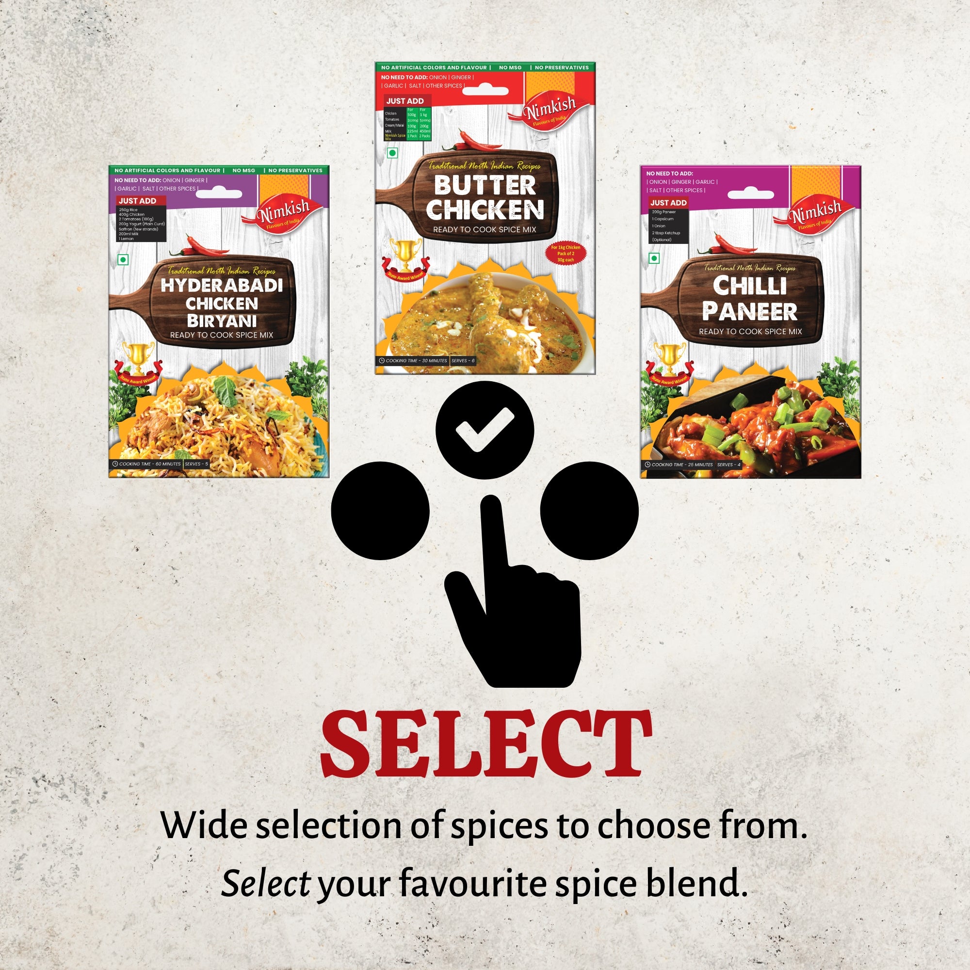 Nimkish Spices brings forth a world of spices to make your cooking easy and fun. The perfect blend of spices for a great meal.