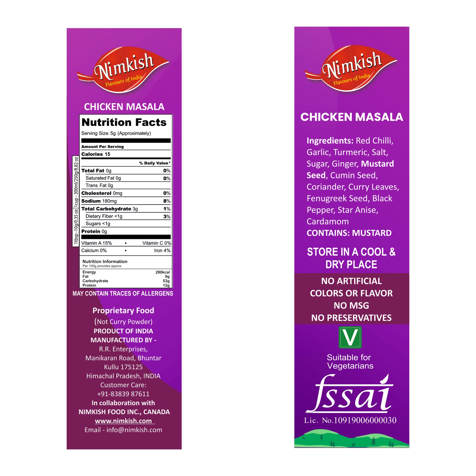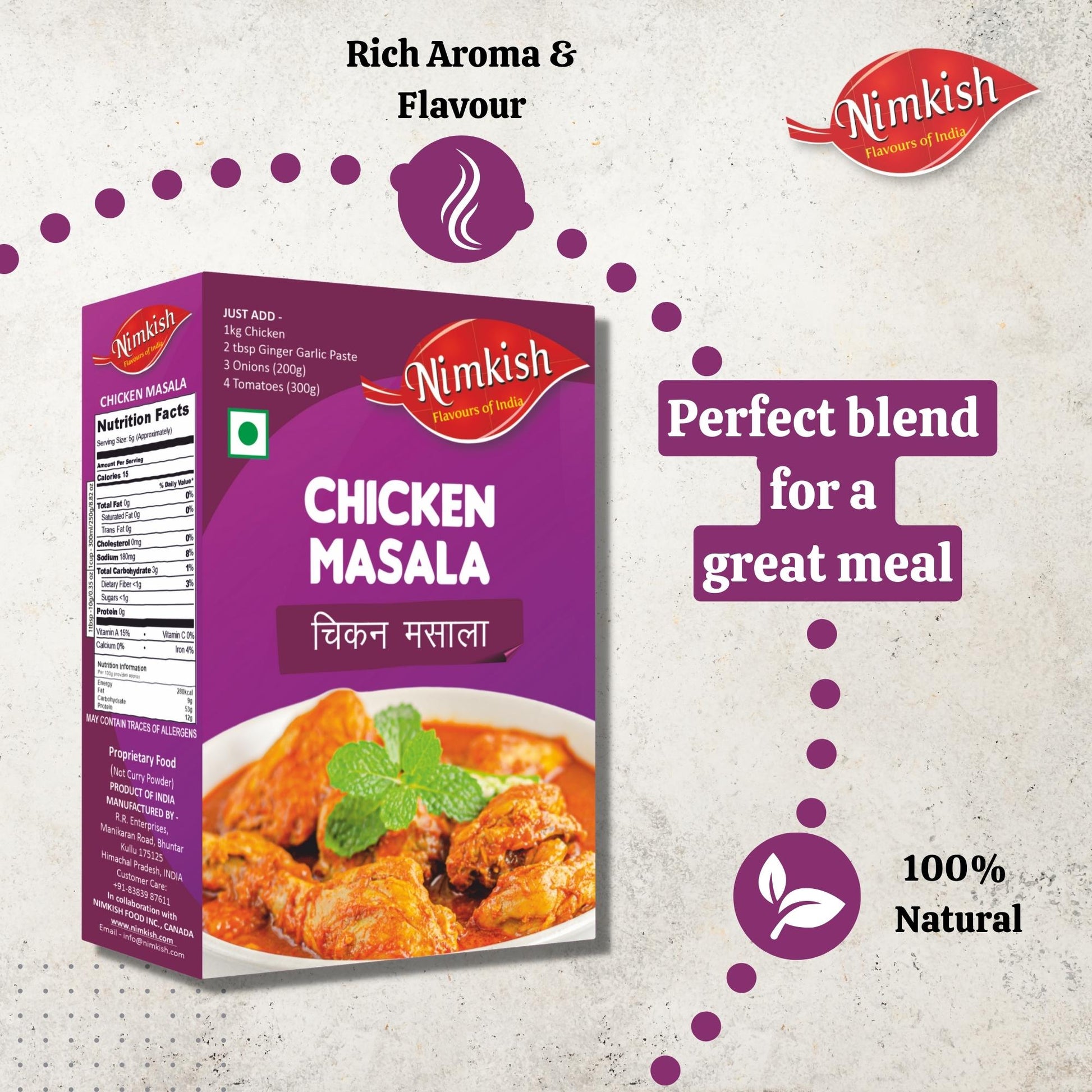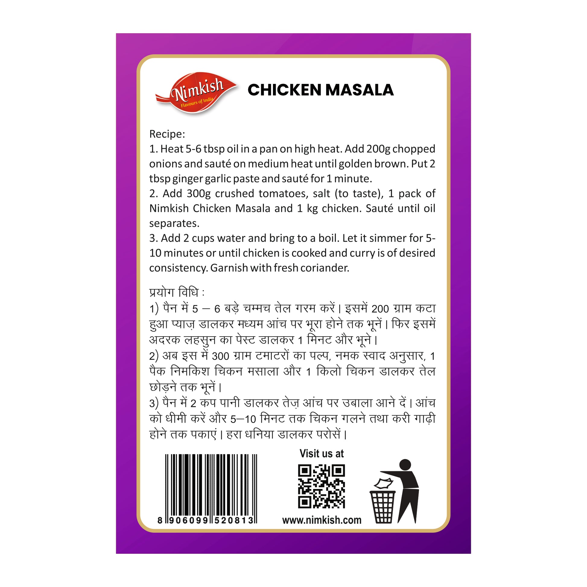 Nimkish Chicken Masala is a perfect blend of spices as a base for a variety of chicken dishes. Each pack contains aromatic masala that is perfect for recipes such as Chicken Tikka Masala, Butter Chicken, Rara Chicken, Chicken Vindaloo and more. Enjoy a flavorful meal with authentic, Indian-style taste.