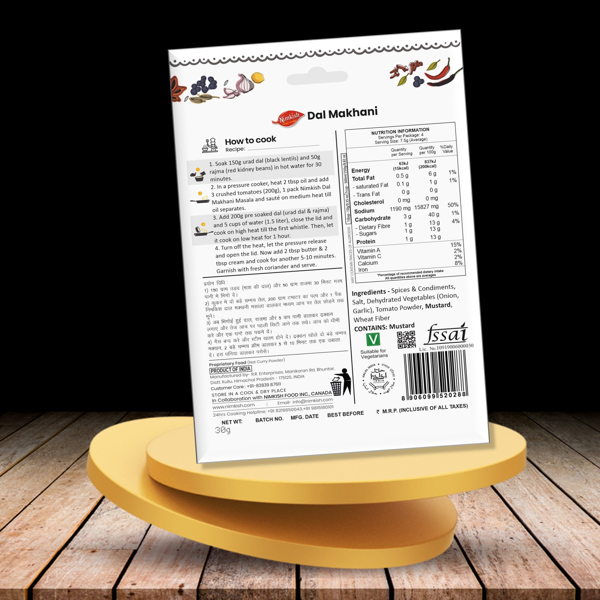 Enjoy your mom's famous Dal Makhani in no time with Nimkish's Instant Dal Makhani Spice Mix. This mix contains only pure spices, without any artificial colours, flavours or preservatives, so you can savor the authentic homestyle flavor. With its simple preparation, you can now enjoy a delectable meal without the hassle.