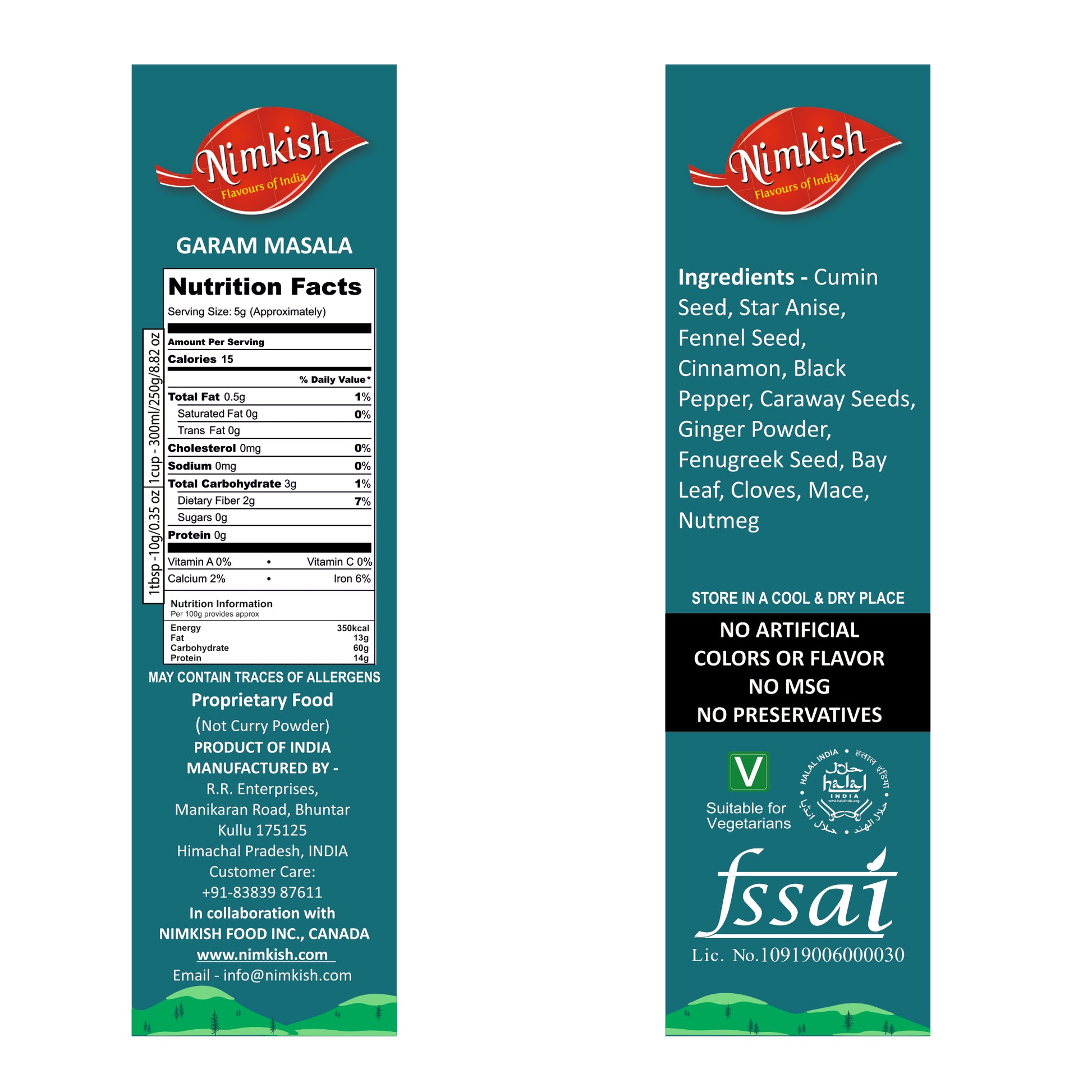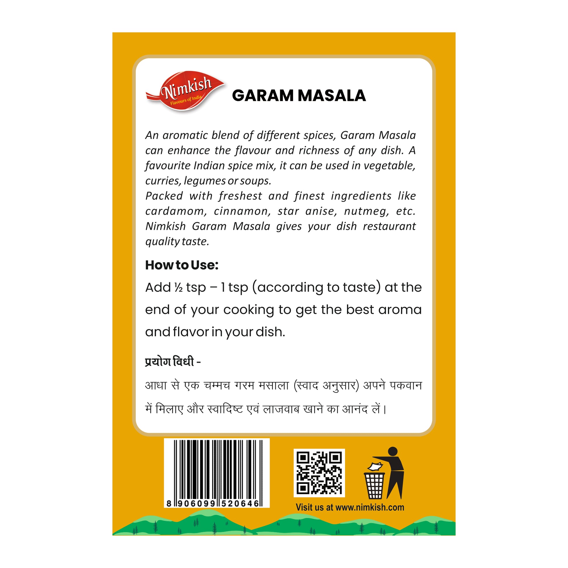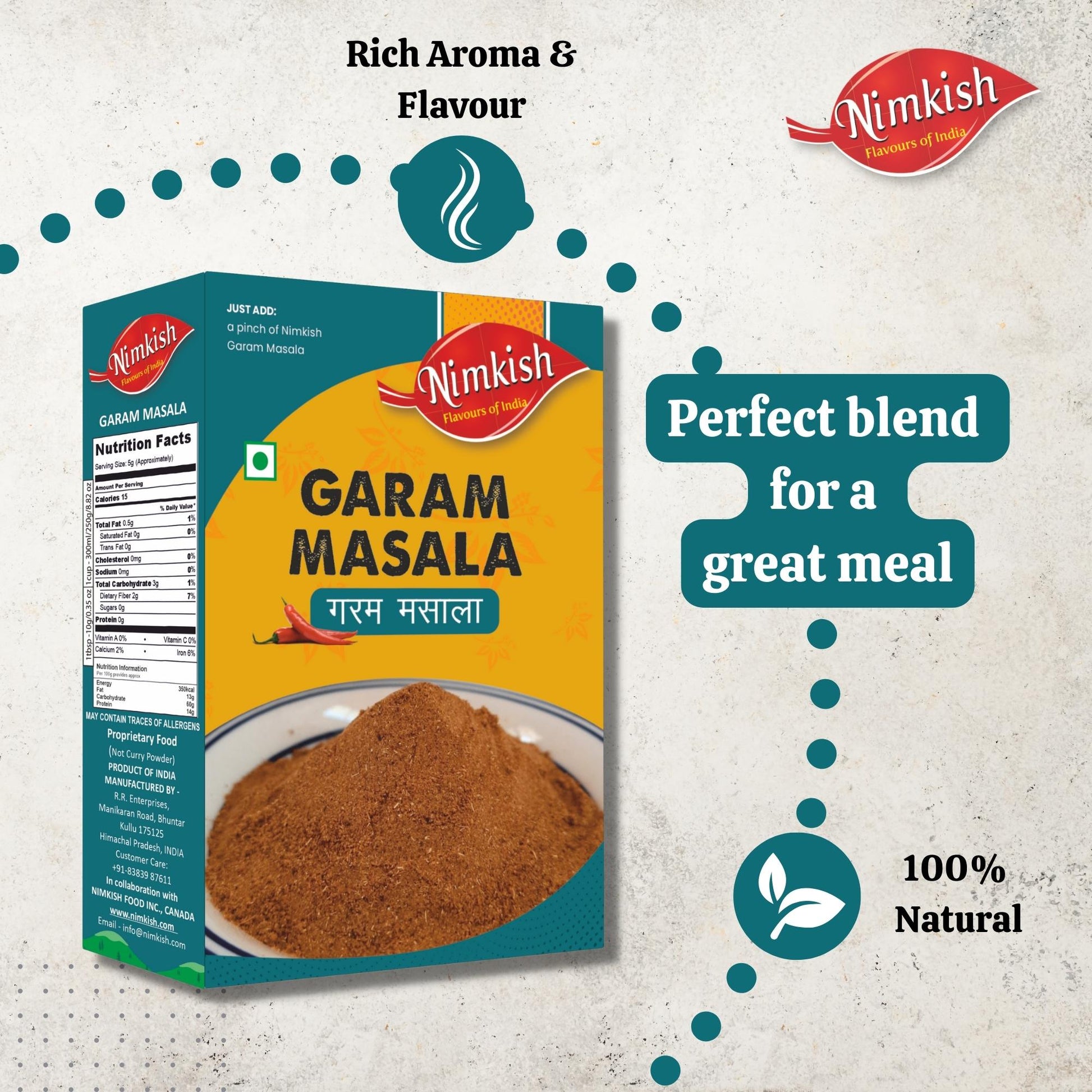 Nimkish Garam Masala is a must-have for any spice cabinet. This pack of garam masala contains a unique blend of spices suitable for both vegetarian and non-vegetarian dishes, from chhole and rajma chawal to chicken and meat curries. Taste the king of all spices with Nimkish Garam Masala. This blend of spices is sustainably sourced from the finest farms, helping to preserve the rich culinary heritage of India. Enjoy authentic flavors and aromas in every dish you make, crafted by experienced homemakers.