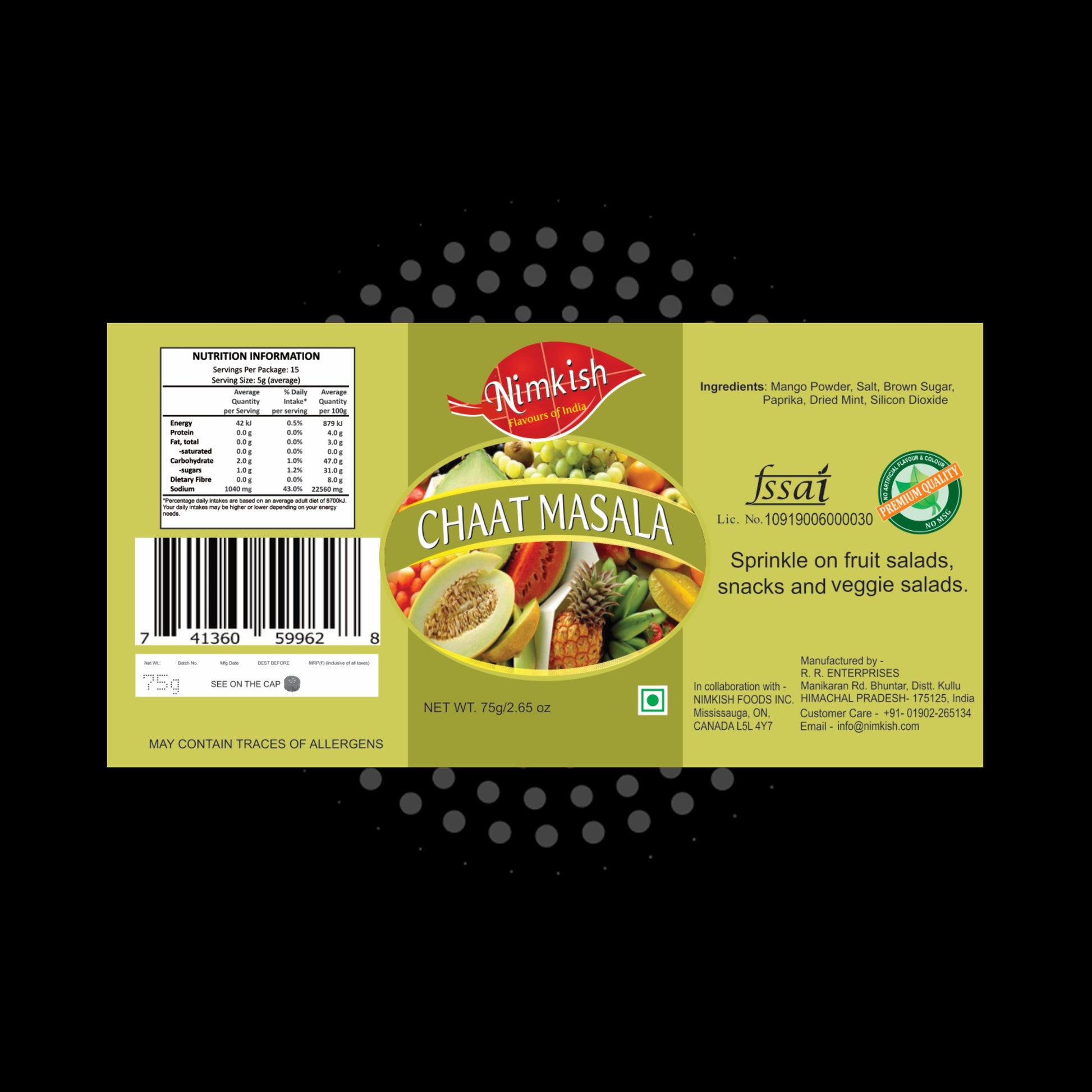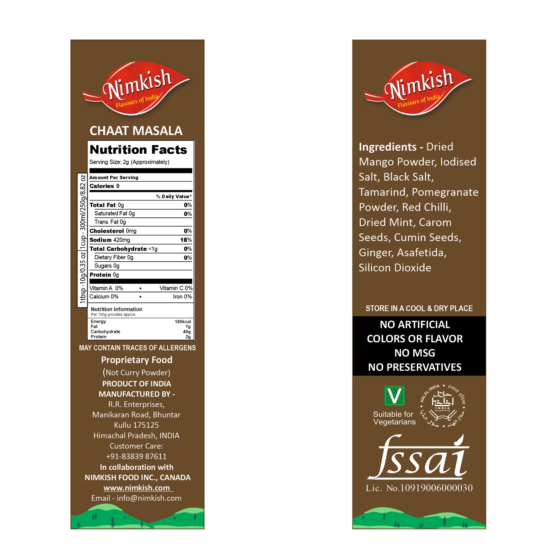 Nimkish Chaat Masala is a zingy, tangy, and slightly hot Indian spice blend that adds bold flavor to your favorite dishes, salads, snacks, and drinks. Sprinkle it on nachos, chaats, stews, and more for a tasty boost of the delicious, familiar chaat spices. This unique spice blend is a versatile way to add a flavorful punch to all your favorite dishes. Rich in aromatic spices, Nimkish Chaat Masala is sure to become a staple in your kitchen.