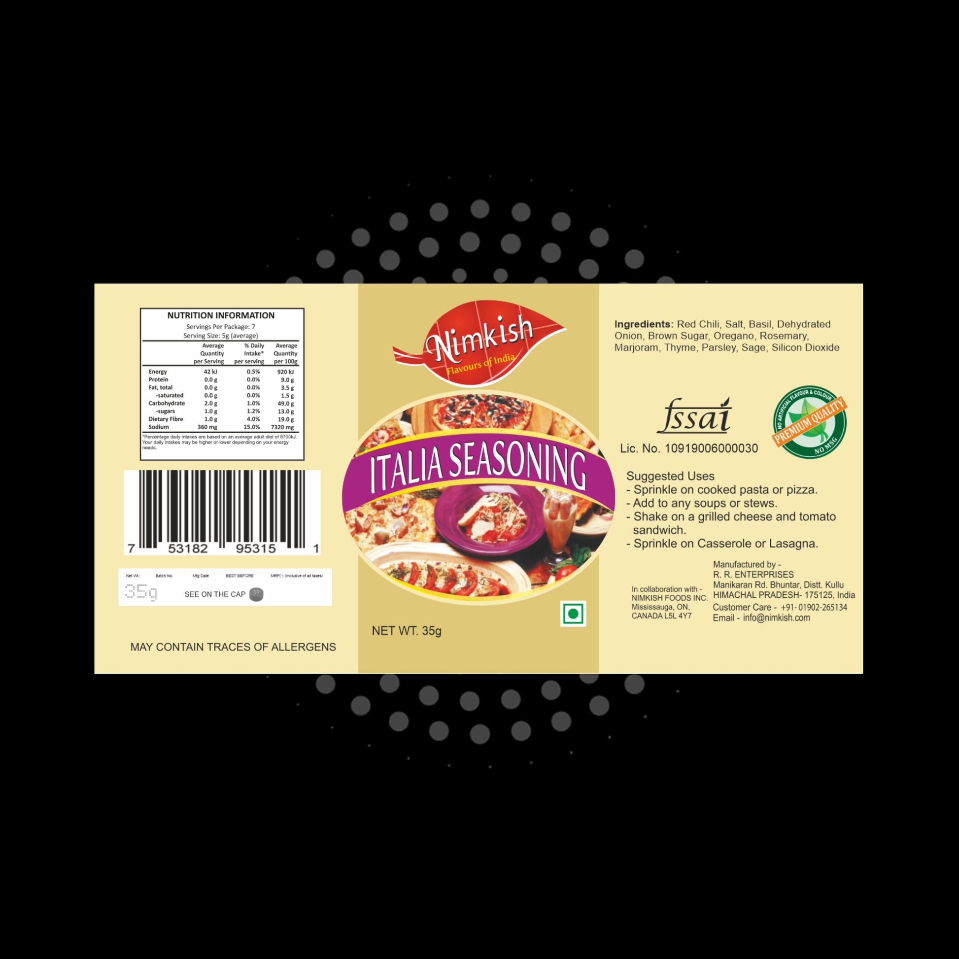 Nimkish Italia Seasoning is the perfect blend of Italian herbs and spices. Featuring oregano, red chilli, sage, marjoram, rosemary, and more herbs this seasoning mix is ideal for pasta, pizza, sandwiches, and such. Enjoy authentic Italian flavor with every meal. This classic combination of herbs and spices will elevate your dishes to the next level. They are sure to add a unique flavor and aroma to all of your recipes.