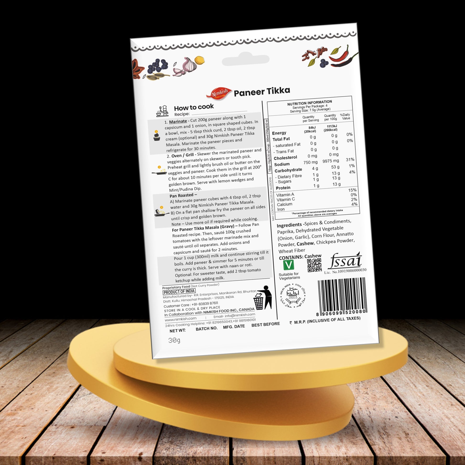 Here’s the perfect solution to your sudden paneer cravings. Made from 100% natural ingredients, Nimkish Paneer Tikka Spice Mix contains premium-quality graded spices to give you a yummy and authentic taste. Quick to make and requires only five basic ingredients. Cook it, serve it, and devour it in a jiffy!