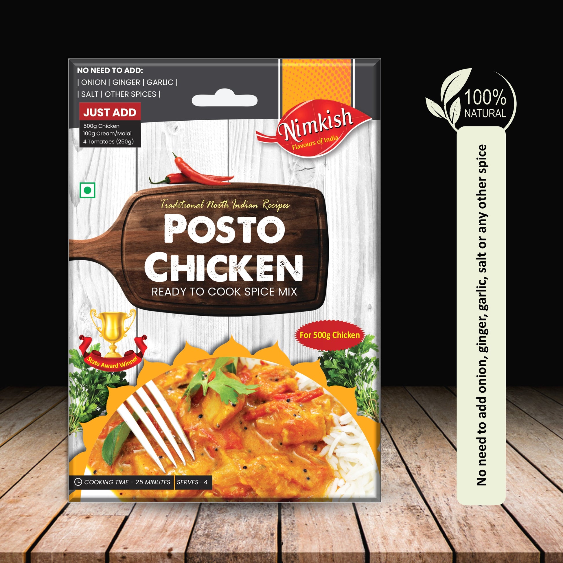 Posto Chicken spice mix boasts poppy seeds and a tantalizing curry that complements both rice and bread. Eliminate the need for adding onions, ginger, garlic, salt and other spices with this 100% natural product. It's a convenient way to bring delicious flavor to your favorite dishes. Enjoy the taste of a home-cooked meal any night of the week - without the hassle of preparing multiple ingredients.