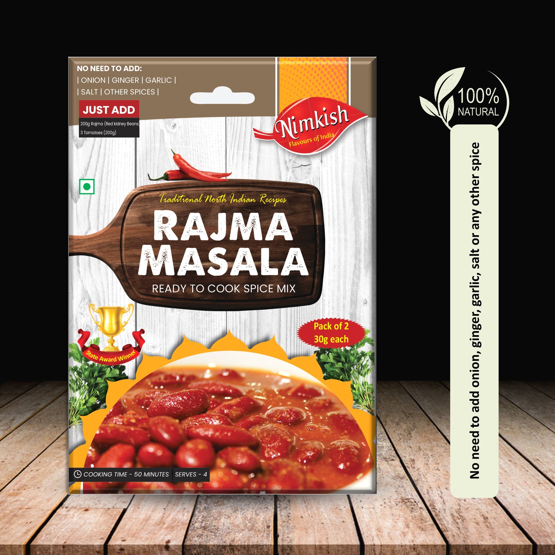 Nimkish Rajma Masala Spice Mix significantly simplifies making North India's favorite Rajma Curry - a hearty and protein-rich dish featuring red kidney beans. Prepare the dish in three simple steps and skip the time-consuming process of cutting and sautéing onion, ginger, garlic and other spices. Enjoy the delicious reward without the labor.